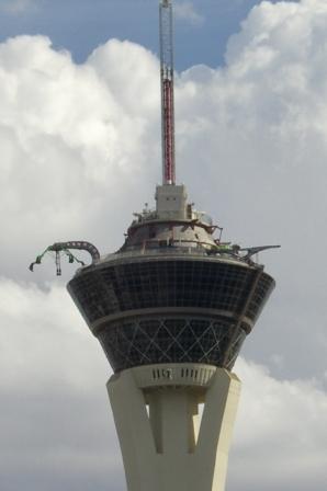 Wir genießen erstmal den fantastischen Ausblick auf den Strip. Wie es wohl hier in 20 Jahren ausschaut ? Wir werden es verfolgen. Es gibt diverse Attraktionen auf dem Turm. Früher gab es dort auch eine Achterbahn, die aber leider wegen der starken Winde zu oft nicht fahren konnte. Es gibt dort auch einen Freefall-tower, eine Karussell und eine Wippe. Seit neusten gibt es dort oben auch Bungee-Jumping (neu seit 04/2010).