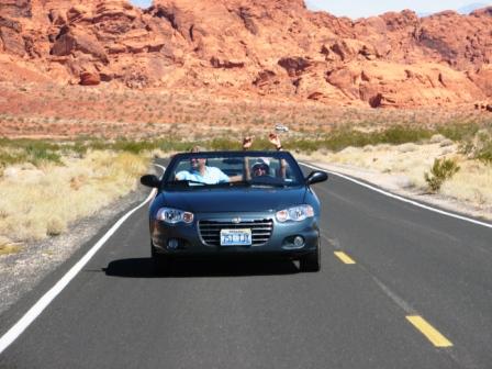 Die Buffets kann man hier einfach nicht links liegen lassen. Tagsüber kann man von Vegas aus super Ausflüge in umliegende, wunderschöne Landschaften unternehmen. Silke & Olli holen uns am Hotel ab und wir düsen zum "Valley of Fire State Park". Das liegt ca. 1 Stunde (60 Meilen) nordöstlich entfernt. Wir genießen den heißen Wüstenwind beim einfahren in den Park ☺☺
