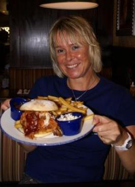 ...es gibt lecker Taco Chips mit Chillibohnen und Käse überbacken und einen riesen Pulled Pork Burger.... leeeeecker !!!