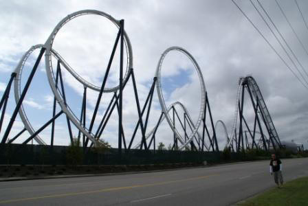 Gegen 7:00 Uhr meldet sich mein Handy zu Wort. Coasterfreund Olli schreibt aus Germany das der HARD ROCK PARK geschlossen wurde. Hatten wir uns doch gestern beim vorbeifahren schon gewundert das auf den Werbetafeln Reopening 2009 stand. Dachten aber das sie auf jeden Fall noch bis Ende September geöffnet haben werden weil ich das letzte Woche vor Abflug noch im Internet auf deren Homepage gecheckt hatte. Aber Pustekuchen - die haben den Park wirklich einfach dicht gemacht !!!! Auf nach Nachfragen bei dem Besitzer unseres Motels munkelt man das er angeblich Pleite sein soll. Er hat extra Investoren die nichts mit der Hard Rock Cafe Kette zu tun haben. Hmmmm... somit gingen wir erstmal ne Runde im Hotelpool schwimmen, frühstückten dann gemütlich auf dem Zimmer und fuhren dann trotzdem dorthin um ein paar Fotos für Ollis Coasterseite www.worldofcoaster.de zu machen.