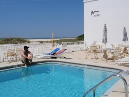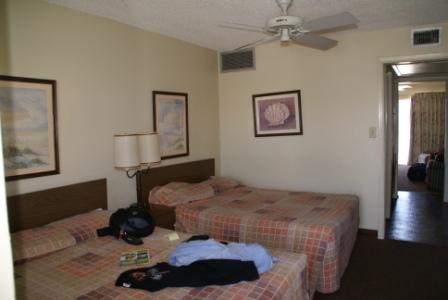 In Sachen Telefon & Lichtschalter sind die Motels immer noch auf dem Stand der 70er. Da Norbert keinen Freitzeitpark mehr besuchen will und sich seit unserem letzten Besuch vor 2 Jahren hier nicht viel getan hat beschließen wir rüber an die Golfküste zu fahren. Auf dem Weg halten wir bei IHOP an wo es gutes, nähreiches Frühstück gibt. Langsam kommen wir uns vor wie bei SUPER SIZE ME. Sovie Fast Food wie möglich... Wir cruisen gemütlich bis Treasure Island (liegt über St. Petersburg Beach). Dort waren wir vor 9 Jahren mal mit Janine & Wim und erinnern uns das der Strand da mega breit und schön war. Das Motel von damals gibt es immer noch (Thunderbuilt). Allerdings wurden die Zimmer nicht renoviert und 85 $ + Tax  ohne Frühstück sind uns zuviel. Die Dame am Empfang lässt auch nicht mit sich handeln. Somit ziehen wir für eine Nacht bei Jeff ins "Jefferson Motel".
