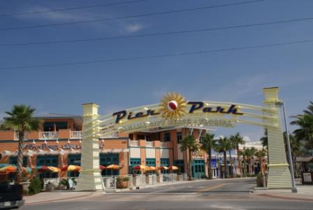 Ortseingang der "PIER PARK". Sehr hübsch und bunte Läden +