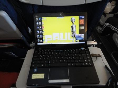 Ja, eigentlich hatten bisher ja nur die Kameras Namen. Aber Norbert hat mir vor kurzem dieses schnuckelige Netbook geschenkt mit einer riiiesen Akkulaufzeit ......... wow !! Somit geht der Flug bestimmt schnell vorbei. Das Essen ist auch ganz gut und Norbert legt sich schon lang und träumt von Strand und Baby-Back Ribs. Sein Freund Kadi hat ihm einen Mundschutz mitgegeben damit er sich nichts einfängt.