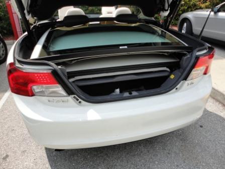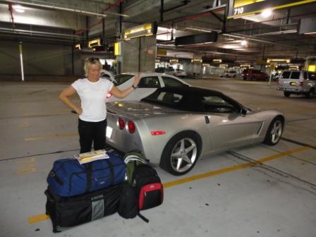 Da die Leute ja hier oft bis zum umfallen arbeiten müssen um ihren Lebensunterhalt zu verdienen verteilt ein Mittsiebzigjähriger in der Schlange der Wartenden kostenlos Straßenkarten und vermerkt nebenher noch wie viele Kunden jeder Mitarbeiter abfertigt. Die stehen ganz schön unter Druck. Die Dame am Counter meint es dann besonders gut mit uns und sagt wir sollten mal Covette fahren -ohne Aufpreis. Leider hat das nur bis 1x durchs Parkhaus gereicht, da wir dann festgestellt haben das mit geöffneten Dach der Kofferraum um die Hälfte schrumpt. Schade, aber irgendwie ist das auch zu protzig. 600 PS.... oder so. Wir warten nun bis uns ein neuer Convertible gebracht wird. Im Parkhaus sind gefühlte 40 Grad und das T-Shirt klebt uns wie ne 2.Haut am Leib. Oh, auch nicht schlecht was da um die Ecke gefahren kommt... ein Volvo C 70 T6... wie soll denn bloß die amerikanischen Wirtschaft angekurbelt werden wenn die Autovermietungen jetzt auch immer weniger Amischlitten anbieten. Na, uns soll es egal sein - nehmen wir ! Der Kofferraum ist aber auch echt mau. Die Hälfte unseres Gepäcks nimmt auf dem Rücksitz Platz da das faltbare Hardtop fast den ganzen Kofferraum einnimmt ;-((( Und man bekommt das wenige Gepäck, was man unter die Vorrichtung verstauen kann bei geöffneten Dach noch nicht mal raus. Nicht ärgern... könnte schlimmer kommen denn ein Navi gibt es auch gratis dazu (fest installiert) **freu**