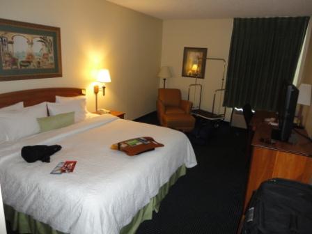 Sachen auf´s Zimmer bringen. Die Zimmer im "Hampton Inn" sind eher