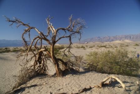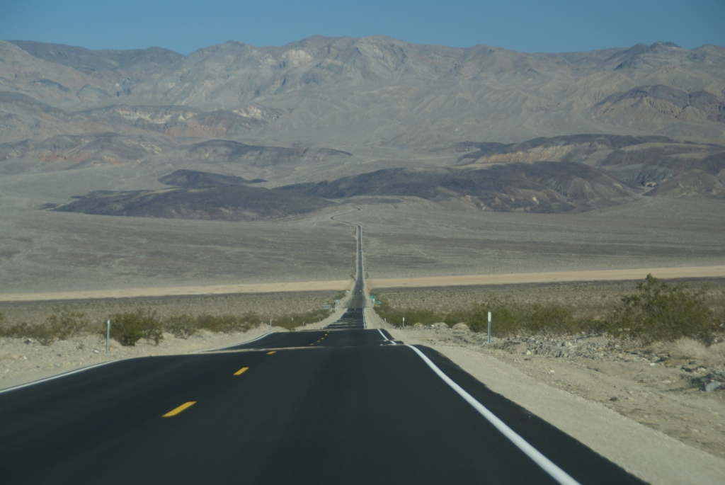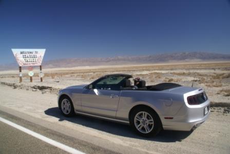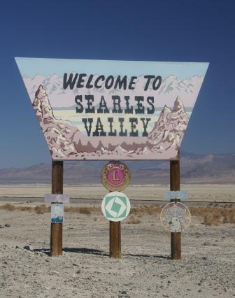 Montag, 14.10.13: SANTA CLARITA => DEATH VALLEY (geplante 4,5 Stunden Fahrtzeit - 270 Meilen) Da wir heute ne ganze Strecke vor uns haben checken wir schon um 9:00 Uhr aus. Es ist noch recht frisch und wir lassen das Dach erstmal noch zu. Unterwegs halten wir bei TARGET an und kaufen für 100 $ ein Navi mit lebenslangen kostenlosen Kartenupdate. Da wir ja doch öfters mal hier sind, lohnt es sich für uns ;-) Das grobe Kartenlesen ist zwar immer ganz hilfreich, aber wenn man in den Städten ist und vor Ort bestimmte Sachen sucht ist es echt easy damit. Wir hatten es jetzt schon 2 x in einem Mietwagen integriert (ohne Aufpreis) und waren begeistert. Wir stellen das Navi also auf Zielort Furnance Creek (Death Valley) und weiter geht es. Wir genießen die karge Landschaft und lassen uns vom Navi treiben. Als wir das "SEARLES VALLEY" durchqueren, welches kurz vor dem Death Valley liegt, denken wir ohje.... in dem angrenzenden Ort würde man nicht freiwillig leben wollen. Wir fahren dort durch und denken der Ort sieht uns nie wieder...