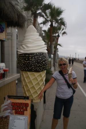 Wir fahren nun zu Mission Beach und verdrücken ein riesiges Monster-Softeis. Das reicht für uns zwei. Leider ist es sehr diesig. Hier ist es bestimmt nett wenn die Sonne schein. Erinnert und etwas an Hollywood Beach in Florida.