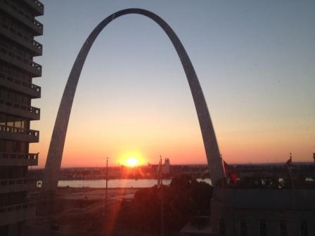 Pünktlich zum Sonnenaufgang wachen wir auf,  was für ein genialer Anblick auf den "Gateway Arch" !!!