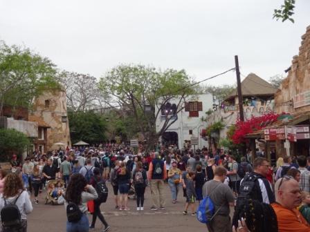 Wir sind um 9:00 h auf dem Parkplatz und dieser ist schon halbvoll. Woher kommen die Alle ? Sind wohl Disney-Hotel-Besucher. Die kommen ne Stunde eher in den Park. Als wir um 9:30 h endlich im Park stehen trauen wir unseren Augen nicht wie voll das schon ist. Wir gehen gleich zum Pandora-Adventure und dort sind schon 210 !!!! Minuten Wartezeit angeschlagen... was geht denn hier ab ?? Wir haben so viel Eintritt gezahlt und was bleibt uns nun übrig als das durchzuziehen denn der Park hat für uns sonst nicht viel zu bieten. Die reale Wartezeit stellte sich auf 2 Stunden (120 Minuten) raus in der wir nett mit 2 Pärchen aus Virgina gequatscht haben (um die 60 Jahre alt) die extra von dort runter gefahren sind um 3 Disney Parks zu besuchen... verrückt die Amis.