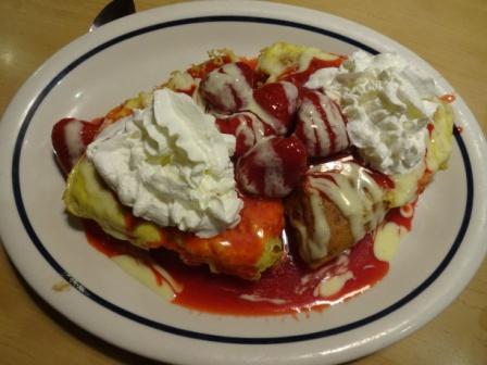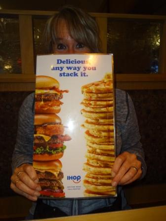 Samstag, 16.03.2019 ORLANDO "SEA WORLD" & "AQUATICA" Was macht man in ORLANDO ? Klar, man besucht natürlich die Freizeitparks !! Aber erstmal gehen wir deftig frühstücken bei IHOP, Dort und beim DENNY´s gibt es die verrücktesten Frühstücke.. kein Wunder das 40 % der Frauen und 35 % der Männer hier fettleibig sind.... Wir bleiben ja immer nur 2-3 Wochen hier und Essen Zuhause dann wieder gesünder, dann geht das. Aber mögen tun wir den "Schweinkram" auch... Wir bestellen uns zu den üblichen sunnyside eggs mit hashbrown und gebutterten Toast noch diese Schweinerei. Gefüllte Waffel mit Vanillepuddding mit eingelegten Erdbeeren und Sahne.