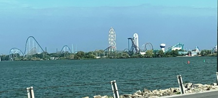 Bei MEIERS, einem großen Supermarkt in Sandusky, erstehen wir 2 Goldpässe für je 99 $ / Person für CEDARPOINT, dem Mekka aller Rollercoasterfans. Genau deshalb sind wir auch nur hier in diesem Nest ☺☺. Der Park liegt auf einer Landzunge vor bei dem Ort. Dort kann es also 24 h lang laut sein. Das würde keinen stören.