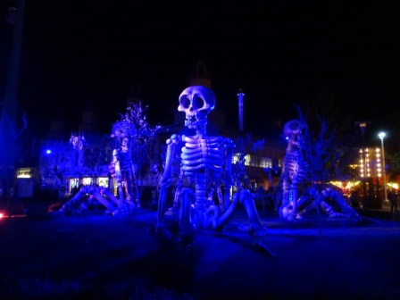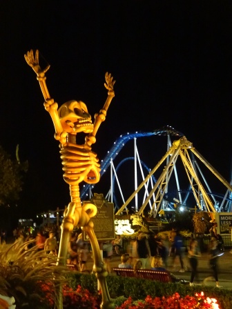 Da eins der Halloween-Wochenenden ist, bricht der Park aus allen Nähten.  Unmengen vom Menschen sind hier, unglaublich. Aber da es viele, viele Achterbahnen gibt und der Park irre groß ist verteilt es sich schon ganz gut.