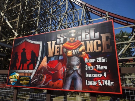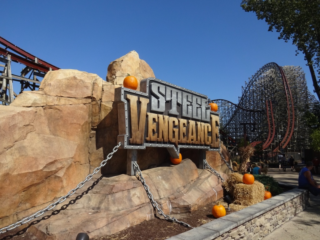 neueste Achterbahn "Steel Venegane" an, die satte 2 Stunden Wartezeit hat.