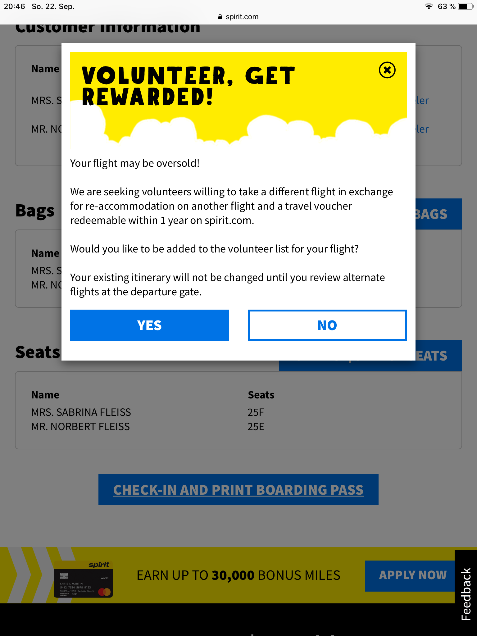 zu nehmen und einen Fluggutschein von 250 $ zu bekommen. Wir reagieren nicht
