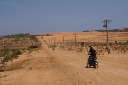 und wir fahren über die Umgehungsstraße (zwischen den roten Dünen) Richtung