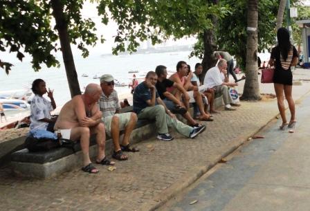 alte Säcke die die knapp bekleideten Damen begaffen, die sich in allen Varianten