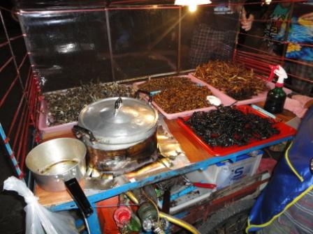 würden. Schwarze Skorpione, Mini-Frösche, Larven, Heuschrecken. Und der Kochtopf