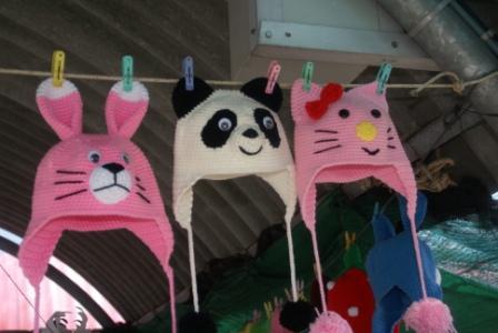 Kopfbedeckung gegen die Sonne wird auch angeboten. Zum Glück haben wir unsere