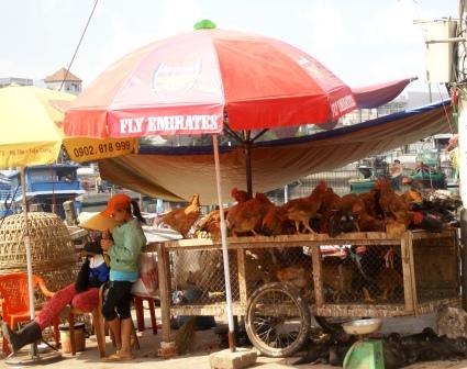 zwischen Hühnern und sonstigen Sachen durch die Gassen um aus Doung Dong