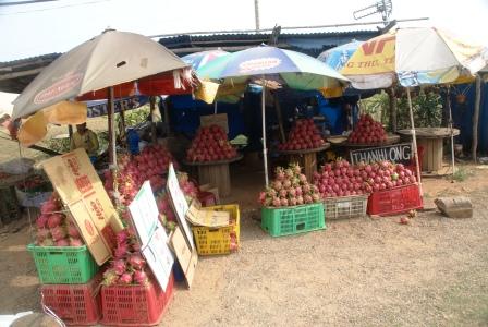 Zuletzt an einem Dragon-Fruit-Feld. Die Pflanzen werden auf Betonpfeiler